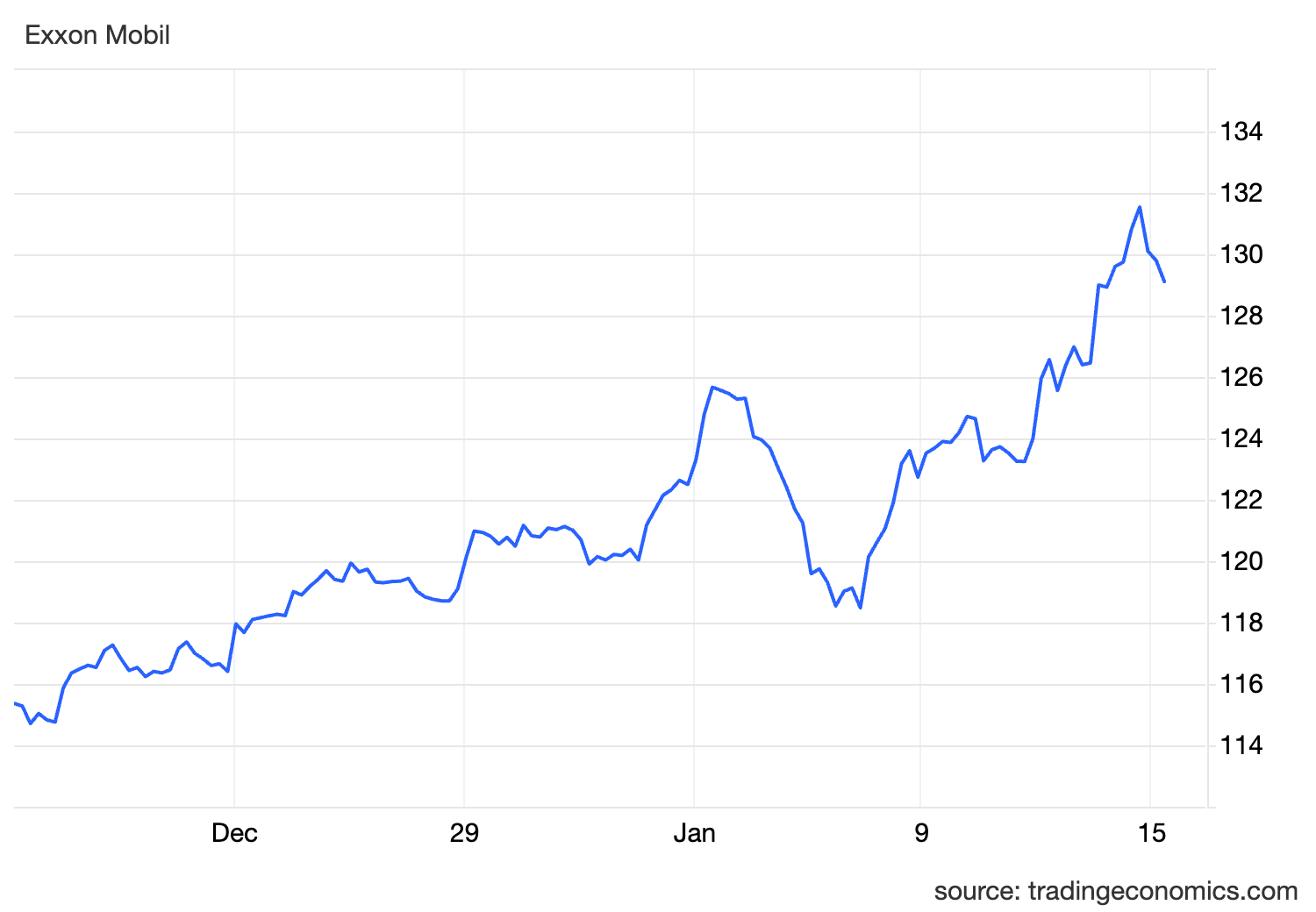 Exxon Mobil Stock Price - Past Month