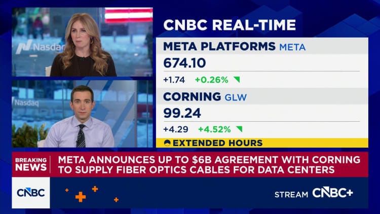 Meta announced it will pay Corning up to $6 billion through 2030 for fiber-optic cable to wire its expanding fleet of AI data centers. The stock surged 16% on the news, then added another 15% the following day after beating Q1 guidance on overwhelming fiber demand.