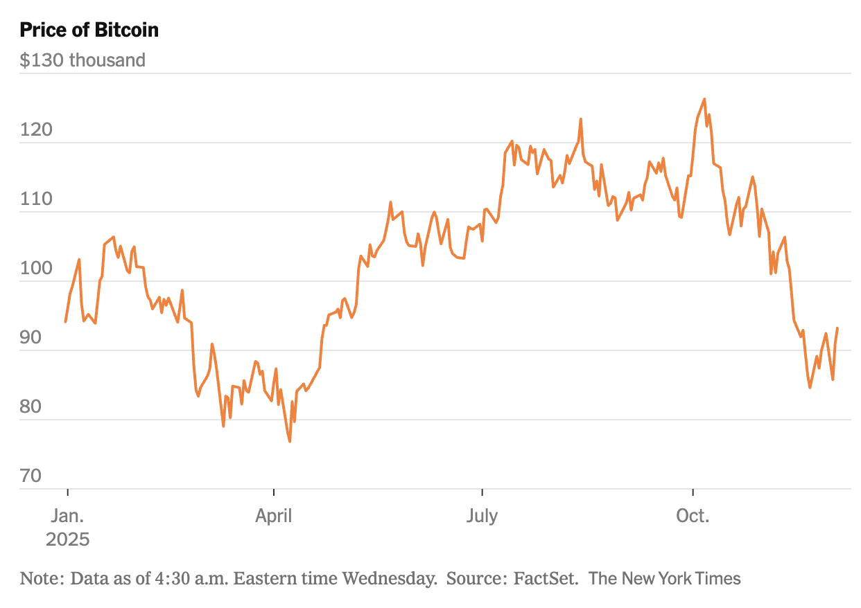 While equities danced near all-time highs, cryptocurrency markets experienced a brutal reality check. Bitcoin plunged below $86,000 this week, down nearly 30% from its October peak. The decline represents Bitcoin's worst monthly performance since the 2022 crypto crash, with November seeing more than $3 billion in net outflows from U.S. spot Bitcoin ETFs.